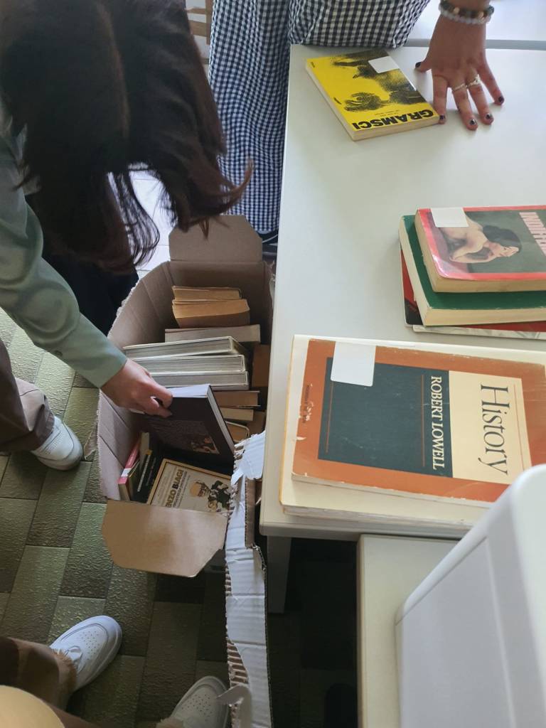 Però di recente, noi studenti della redazione del “Russell Fontana News” abbiamo ritrovato dei libri nei cassonetti dell’istituto Russell, dopo che qualcuno li aveva catalogati come futili. Quello che stava per essere perduto per sempre era un patrimonio letterario inestimabile, da romanzi sud americani, a manuali di filosofia, passando per testi latini e greci, fino ad arrivare a poesie russe e romanzi di fine settecento, ottocento, e novecento.