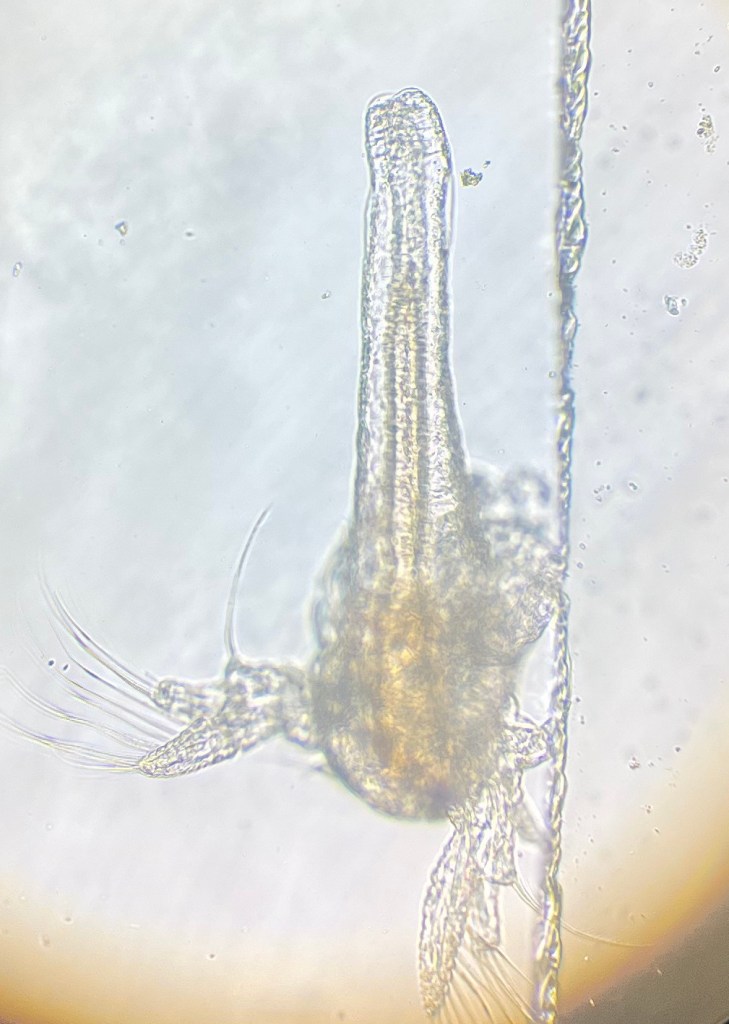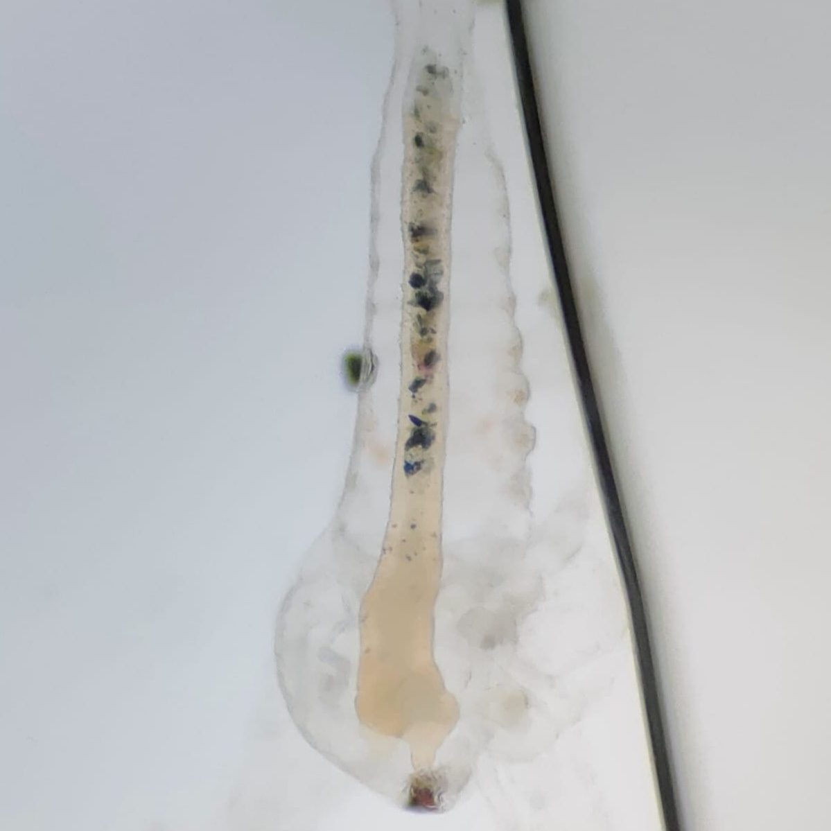 Dopo un paio di giorni ho iniziato ad analizzare dei campioni, accorgendomi che le larve contenevano della plastica all’interno dell’intestino. Questo risultato dimostra che lo zooplancton, se esposto alla microplastica proveniente dal deterioramento di pezzi di plastica più grandi, la ingerisce e questa entra nella catena alimentare. è stato dimostrato in laboratorio che queste particelle sono talmente piccole che riescono a passare dall’intestino al sistema linfatico e nella circolazione sanguigna. La conseguenza è che la microplastica si accumula nei tessuti, e gli organismi che si ciberanno di queste larve accumuleranno a loro volta la sostanza inquinante. Questo è il processo di biomagnificazione.